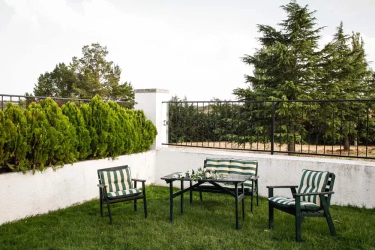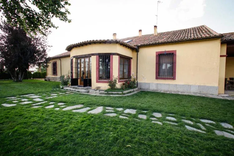 Sobre dos riberas, en un mar de encinas se alza la casa. Un enclave privilegiado desde donde el visitante puede disfrutar del típico paisaje de dehesa charra. La Casa está rodeada de un coqueto jardín y dos porches, uno al aire libre y otro acristalado, totalmente amueblados para su confort. La piscina, las mesas de piedra, columpios y otros pequeños detalles favorecen la comodidad durante su estancia.