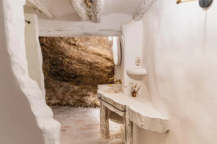 Un edificio de más de 150 años engarzado a la montaña, alberga las tres habitaciones con cama doble y baño completo en cada una.