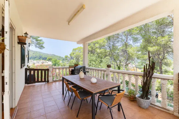 Gracias a sus amplias ventanas, la casa se llena de luz natural durante todo el día, creando una atmósfera acogedora. La piscina, situada en una zona elevada y accesible por escaleras, ofrece vistas espectaculares del entorno verde, convirtiéndose en el rincón ideal para desconectar y recargar energías.