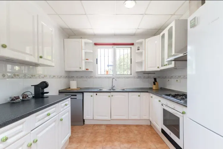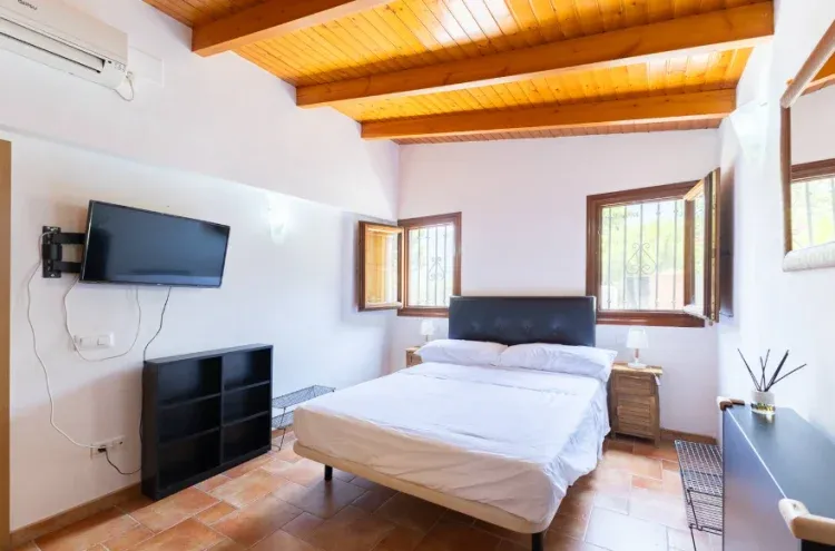 La vivienda cuenta con dos habitaciones espaciosas, cada una equipada con camas de 1,60 metros y aire acondicionado, garantizando noches frescas y cómodas. Una de ellas incluye baño en suite, ideal para quienes valoran la privacidad. Además, hay un estudio con teclado musical, perfecto para relajarse o dejar volar la inspiración.